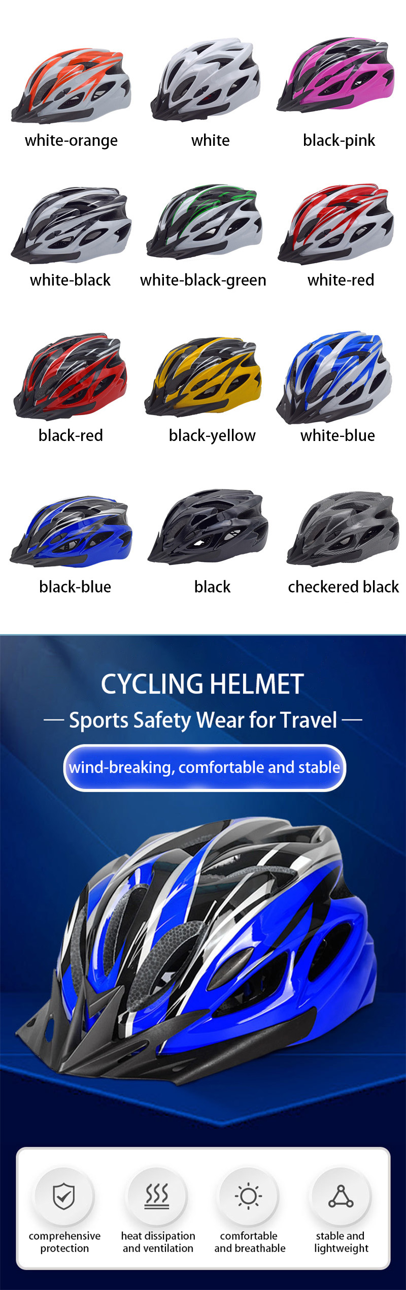 Feature:18-hole,unibody design,adustable head circumference