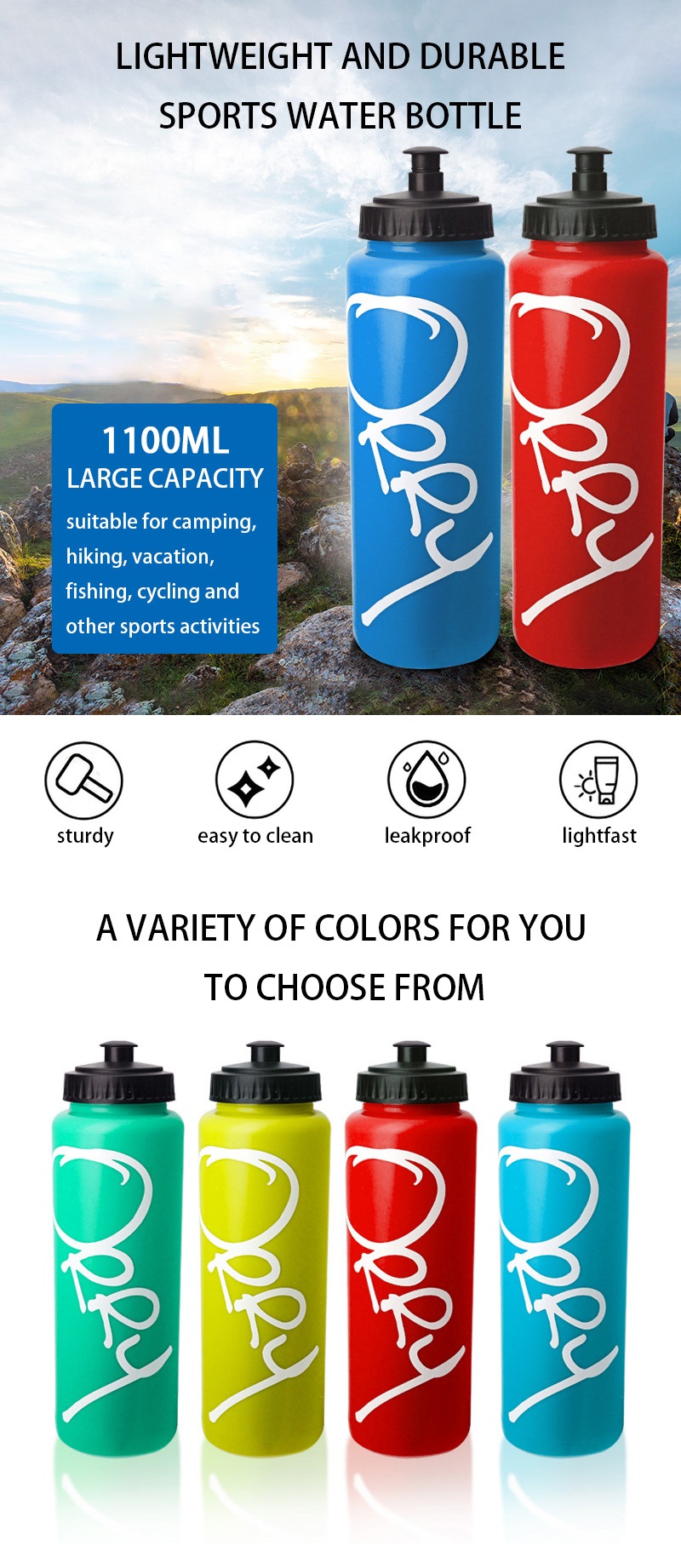 Item No.:LWB250004 Name:water bottle Material:PE Size:1100ml(8*25cm) Net Weight:85g Standard Packing:Oppbag