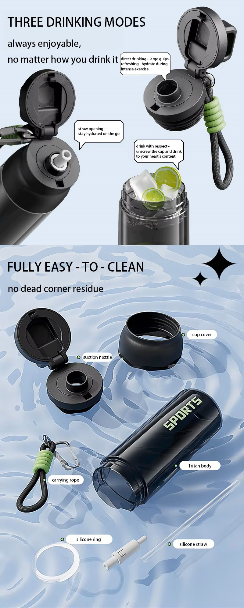 Item No.:LWB250005 Name:water bottle Material:tritan Size:700ml(7.4*27cm) Net Weight:210g Standard Packing:Oppbag