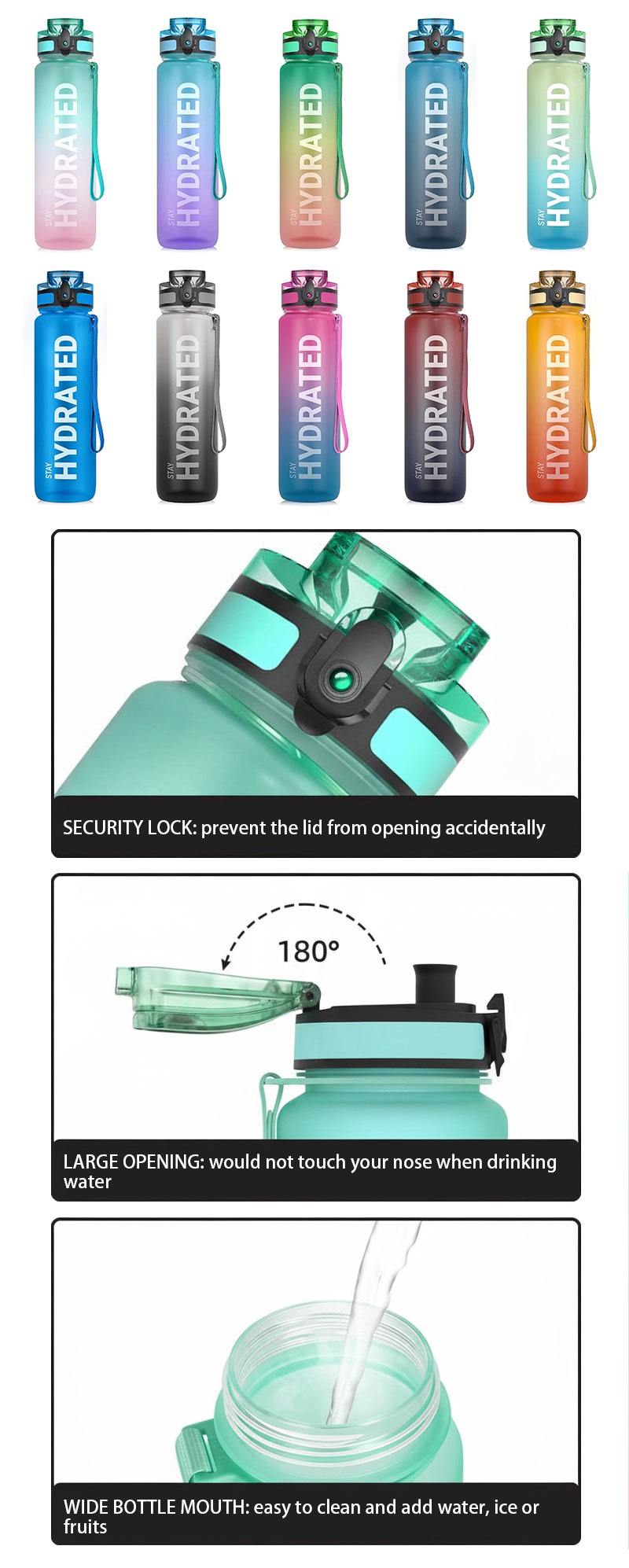 Amazon Hot Sales Water Bottle, 32/25/17oz Durable and Leakproof Water Bottles Motivational with Time Marker, Tritan, BPA Free, Wide Mouth with Easy Clean Brush for Gym, Travel, School, Office