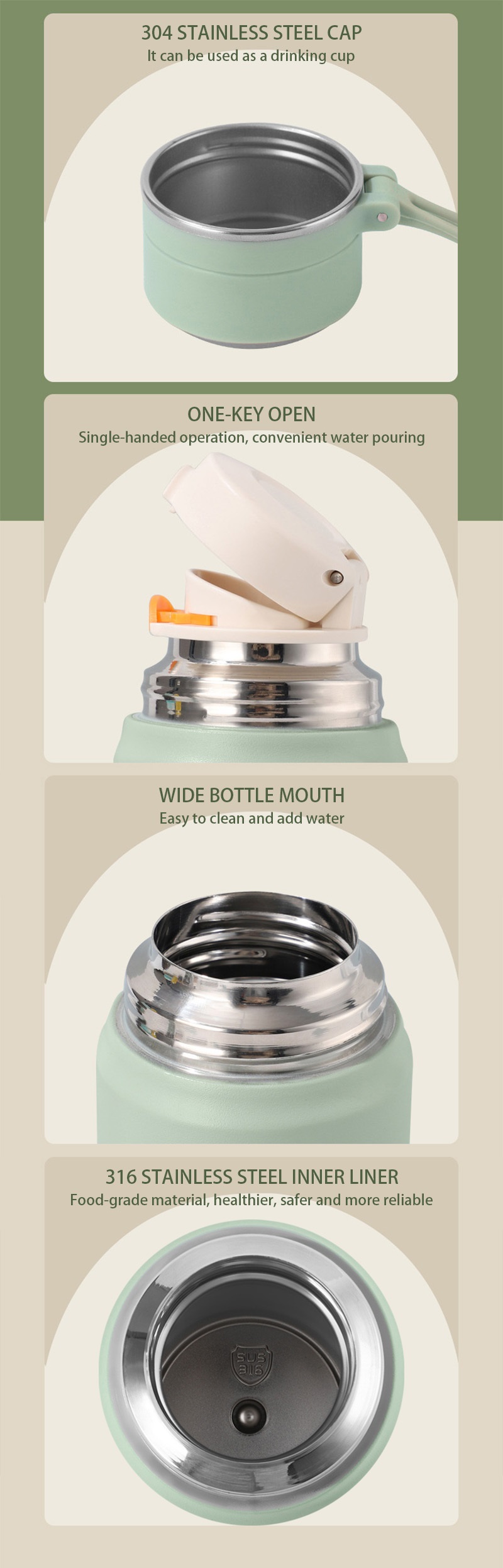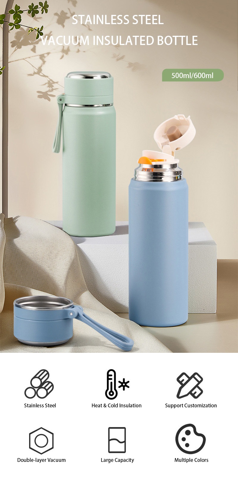 Item No.:LWB251004 Name:water bottle Material:stainless steel #316 & #201 Size:500ml(6.8*21.5cm), 600ml(6.8*24.5cm) Net Weight:250g(500ml), 280g(600ml) Standard Packing:black box